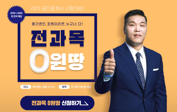 31회 공인중개사 큐넷 시험접수 시작 메가랜드 전과목 0원땅 이벤트